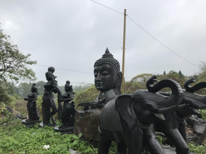 நான் இங்கு வந்திருக்கக் கூடாது என்று தோன்றியது எனக்கு. எங்கு திரும்பினாலும் சிலைகள். பல சிதிலமான சிலைகள். பாதியில் நிற்கும் சிலைகள். வேலைப்பாடுகள் ஆரம்பிக்கப்பட்டக் கற்களின் அடிப்பகுதியைப் பக்கவாட்டில் பார்க்கும்பொழுது ஏற்பட்ட ஒருவித உணர்வு என எனக்குள் ஏதோ ஒன்று உடனே இந்த இடத்தை விட்டு அகலச் சொல்லிக்கொண்டே இருக்கிறது. குறிப்பாக இந்த சிவன் சிலையின் மீது படர்ந்துகொண்டிருக்கும் பாம்பின் கண்களும் அந்த பிளவுபட்ட நாக்கும், பாம்பின் வளவளப்பான தேகம் கொடுத்த அசூயையும் இங்கு நிற்க விடாமல் செய்துகொண்டிருக்கிறது.